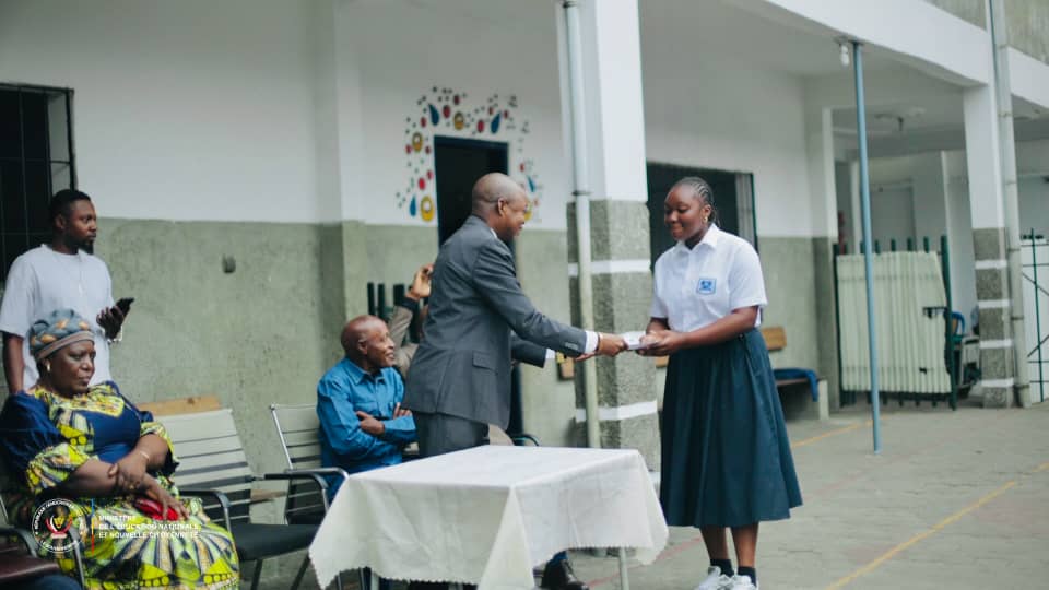 Des bulletins scolaires cartonnés ont été officiellement remis, de manière symbolique, aux élèves de cinq établissements de la capitale : le Complexe scolaire Ndwenga, le Collège Samuel Levi, le Complexe scolaire Bozindo, le Lycée Liziba et l’Institut de la Gombe.