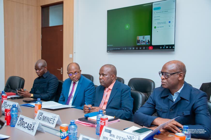Conformément aux instructions du Chef de l’État données lors des réunions du Conseil des ministres sur la lutte contre la fraude minière, le Vice-Premier Ministre, Ministre de l’Intérieur et Sécurité, Jacquemain Shabani, a présidé, ce jeudi 9 octobre 2025, dans son cabinet de travail, une séance de travail sur cette problématique, avec la participation des ministères et services concernés, dont le Ministre des Mines (en visioconférence), le Conseiller du Président de la République, l’Inspecteur général des Mines, le Directeur général du CEEC, la Commission nationale de lutte contre la fraude minière et la Police nationale congolaise.