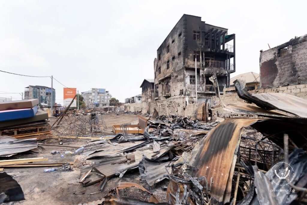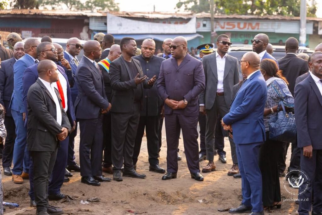 Le Président de la République Félix Antoine Tshisekedi Tshilombo s’est rendu dans le quartier Delvaux, dans la commune de Ngaliema, à Kinshasa, pour échanger avec des jeunes ébénistes dont les ateliers ont été détruits par un grave incendie le samedi dernier et en évaluer les dégâts.