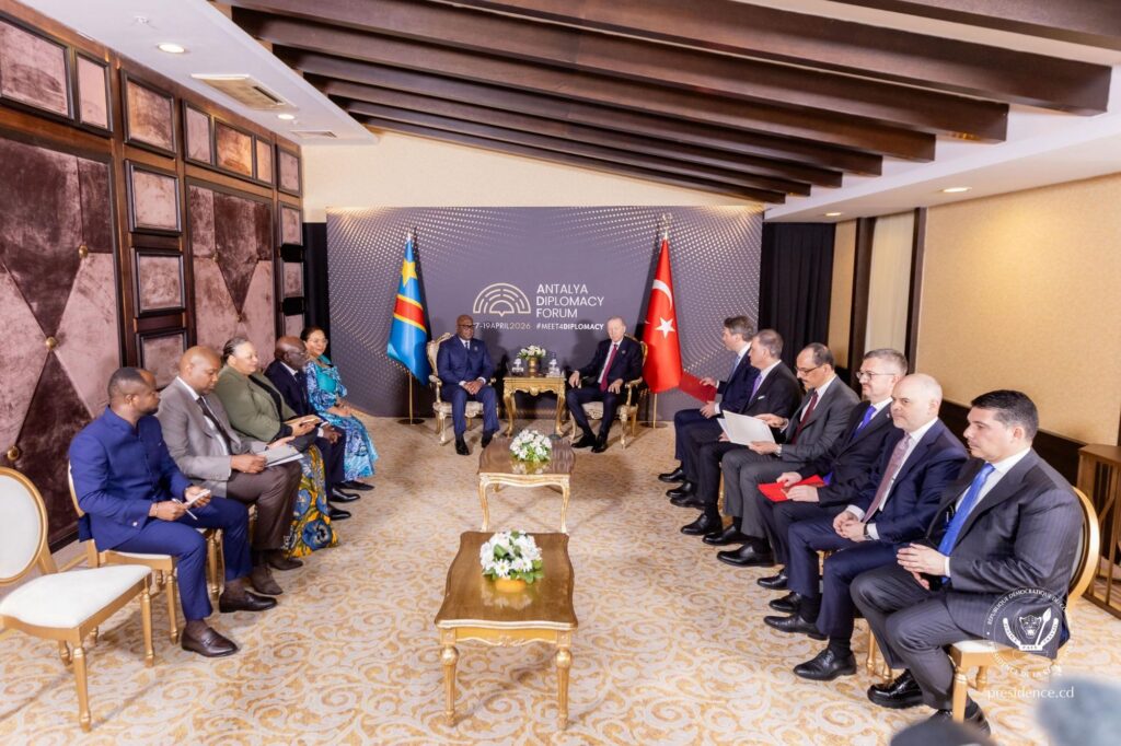 À l’issue de la rencontre entre le Président de la République, Félix-Antoine Tshisekedi et son homologue turc, Recep Tayyip Erdoğan, en marge du 5ème Forum diplomatique d’Antalya, ce samedi 18 avril 2026, les deux Chefs d’État ont eu des discussions fructueuses sur les grandes priorités du partenariat stratégique entre la République Démocratique du Congo et la République de Türkiye.